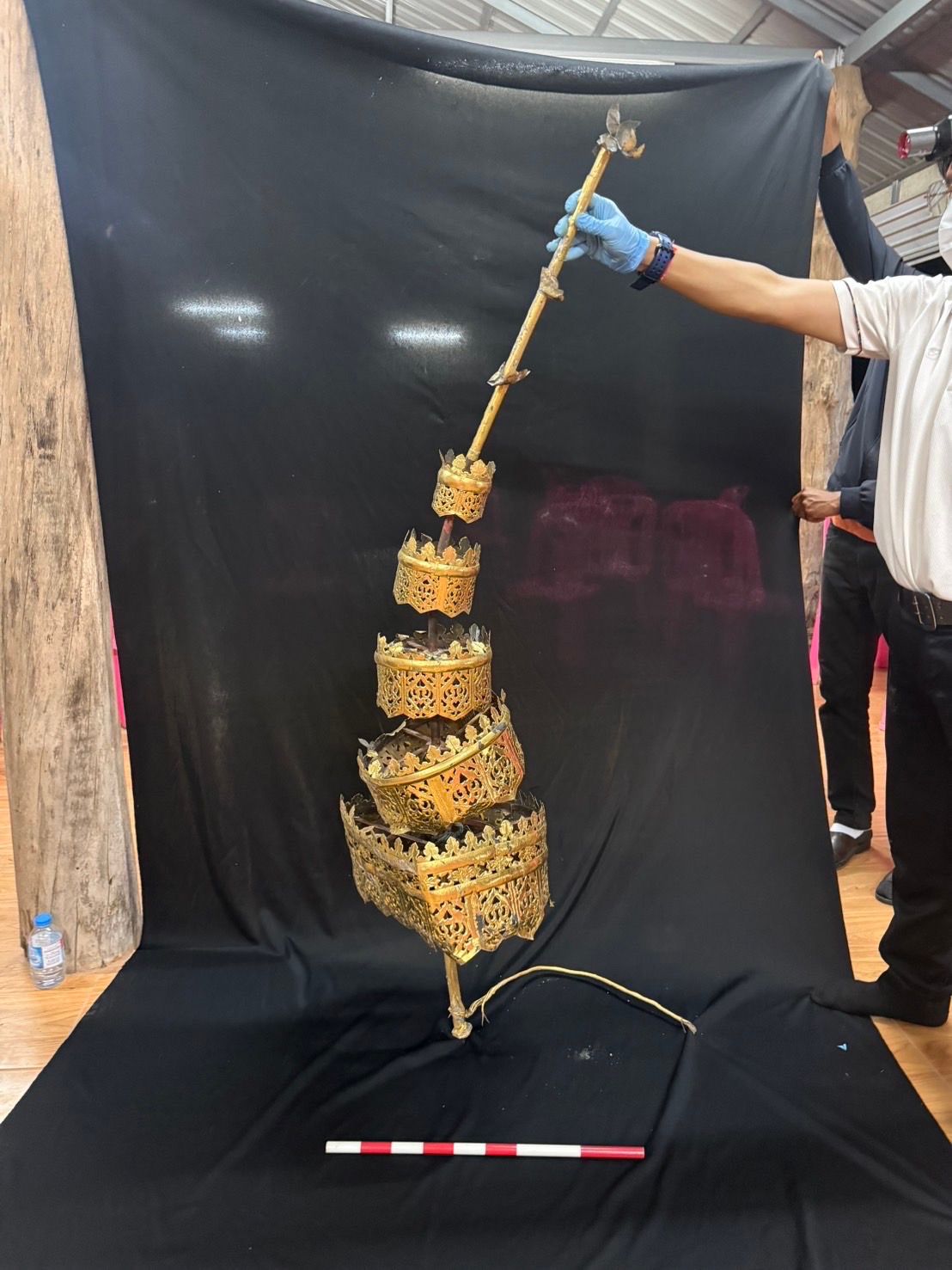 จากนั้นในเวลา 16.00 น. สำนักศิลปากรที่ 9 อุบลราชธานี ได้จัดประชุมชี้แจงร่วมกับวัดพระธาตุ หน่วยงานท้องถิ่น และประชาชนในพื้นที่ เพื่อสร้างความเข้าใจและวางแนวทางดำเนินงานร่วมกัน โดยมีการประสานเจ้าหน้าที่จากพิพิธภัณฑสถานแห่งชาติร้อยเอ็ด เข้าร่วมสำรวจและเก็บรวบรวมวัตถุโบราณที่อยู่ภายในซากพระธาตุทั้งหมด