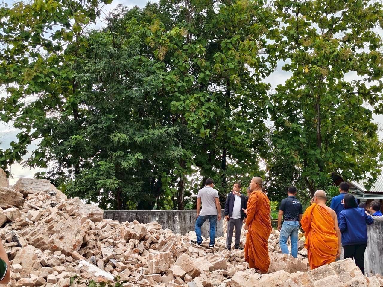 เปิดภาพพระธาตุโนนตาล 121 ปี พังถล่ม พบโบราณวัตถุ สาเหตุฝนตกหนัก ชื้นสะสม
