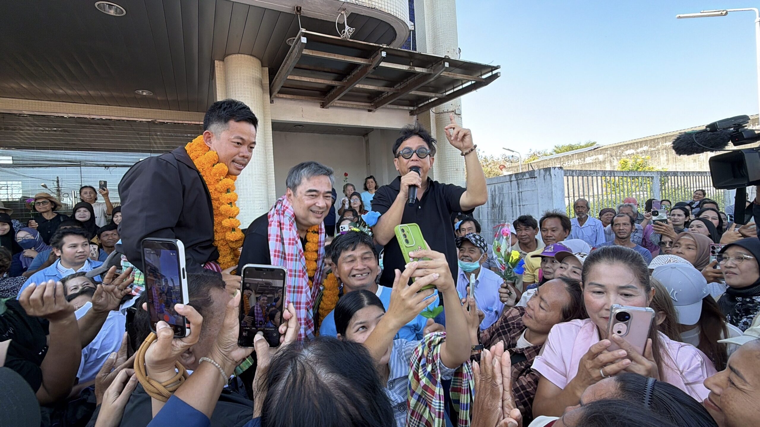 โดยมีประชาชนแห่ขอถ่ายรูป เซลฟี่ คล้องพวงมาลัยดอกดาวเรือง มอบดอกกุหลาบแดง บรรยากาศเป็นไปคึกคัก